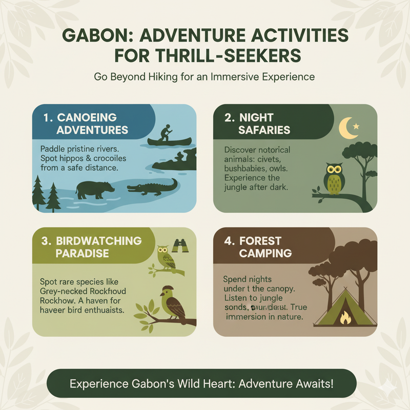 Gabon offers much more than hiking. Thrill-seekers can enjoy: